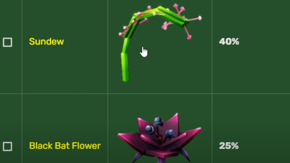 | Black Bat Flower | Rare | 25% | Tier 8 |