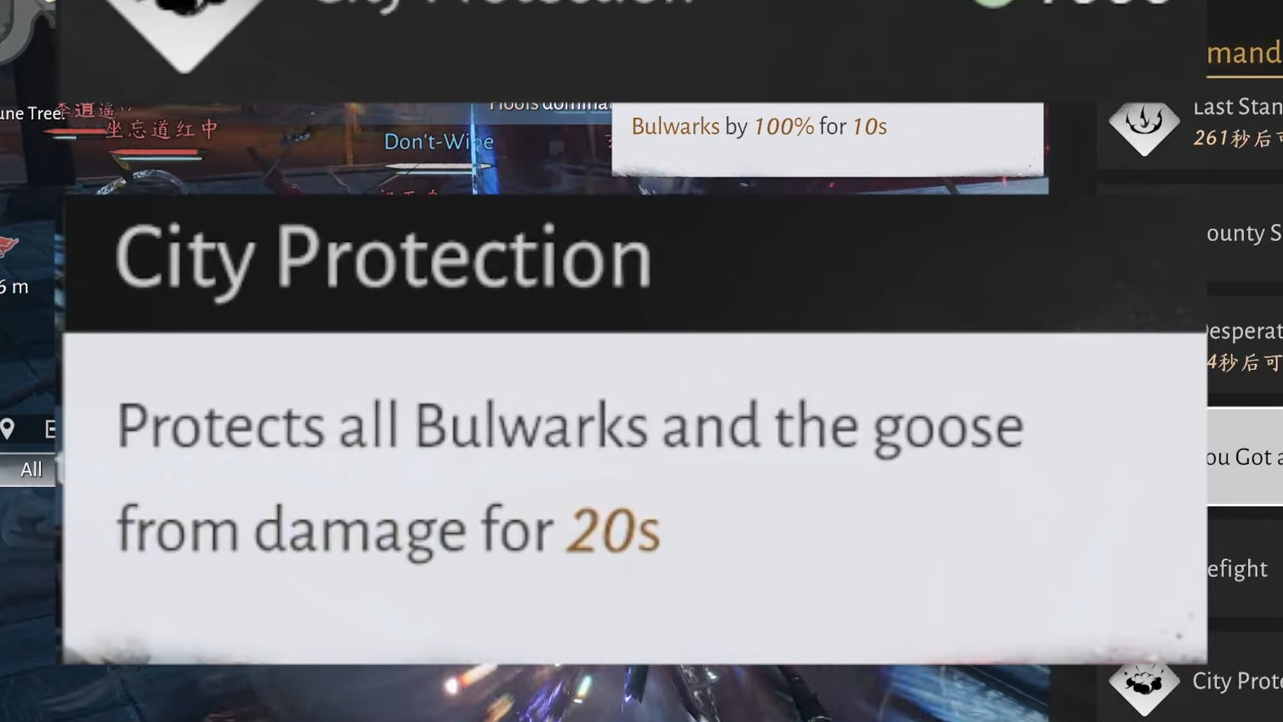 City Protection prevents all damage to your towers and goose for 20 seconds. Use this defensively when the enemy commits to a push.