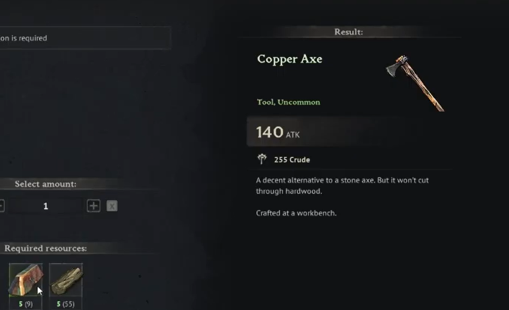 If you do not have a Copper Axe yet, craft one at the Workbench using 5 Copper Ingots and 5 Wood. Copper Ore is farmed in the Coastal Jungle before the biome transition, so most players already have the materials by the time they reach the Foothills.