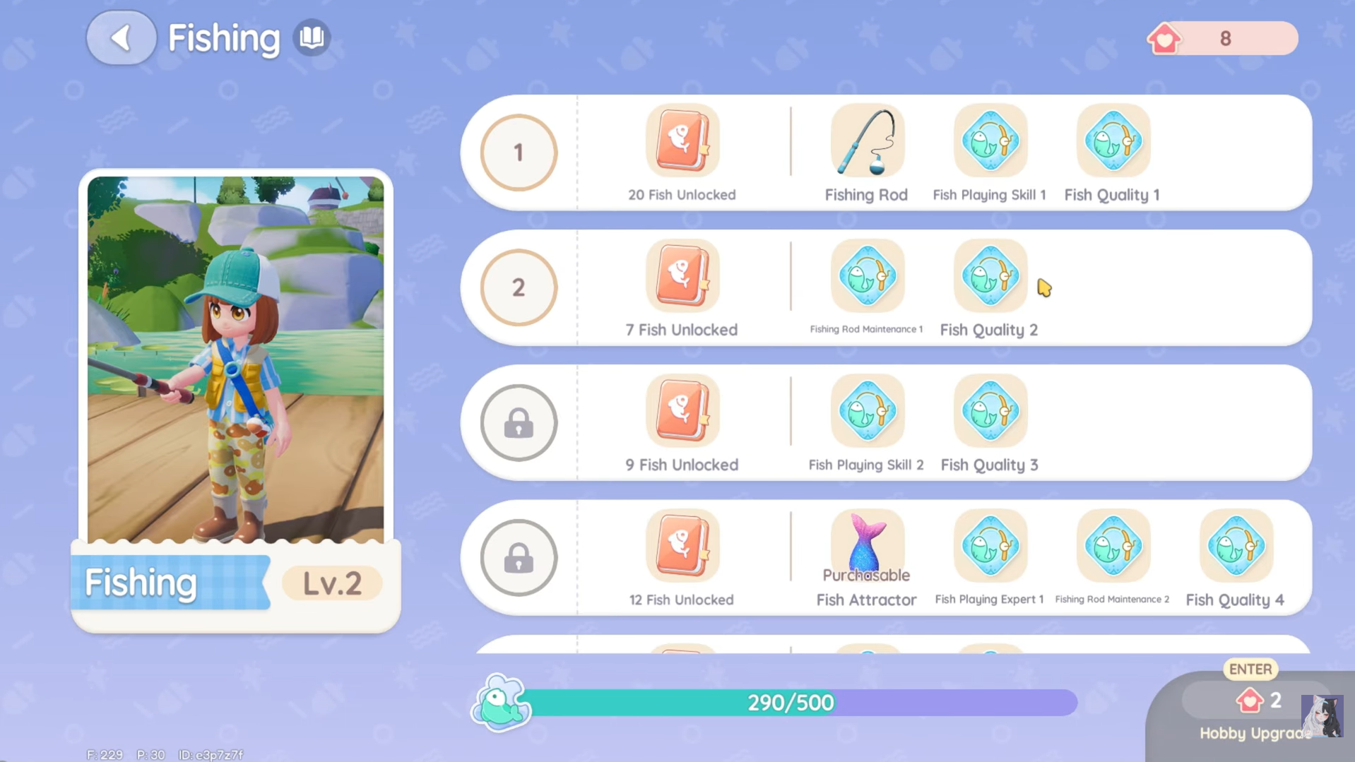 Fishing is the first hobby you unlock and one of the easiest to level. It begins as a solid, low-effort income stream and becomes extremely profitable once you access events and special weather.