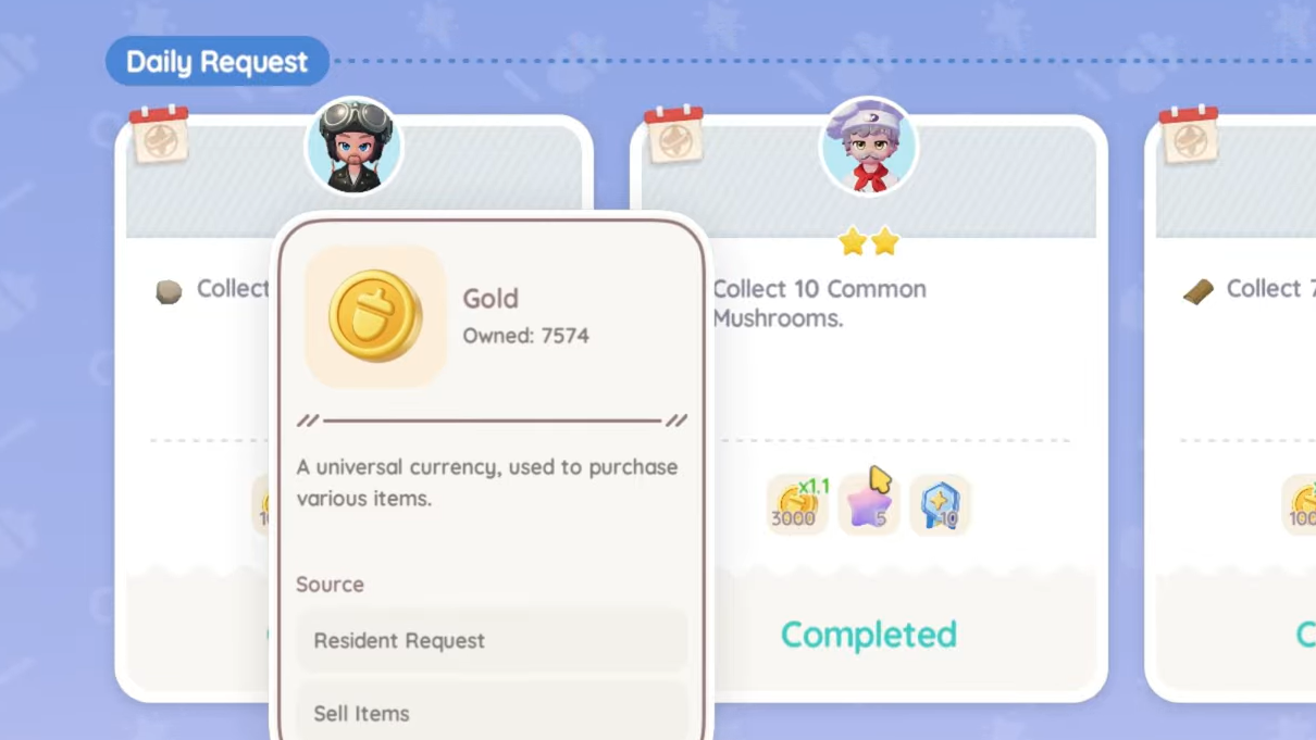 Requests often ask for crafted items, specific fish, or simple fetch quests. They are especially worthwhile in early levels, when each one can fund multiple seed packs or cooking ingredients.