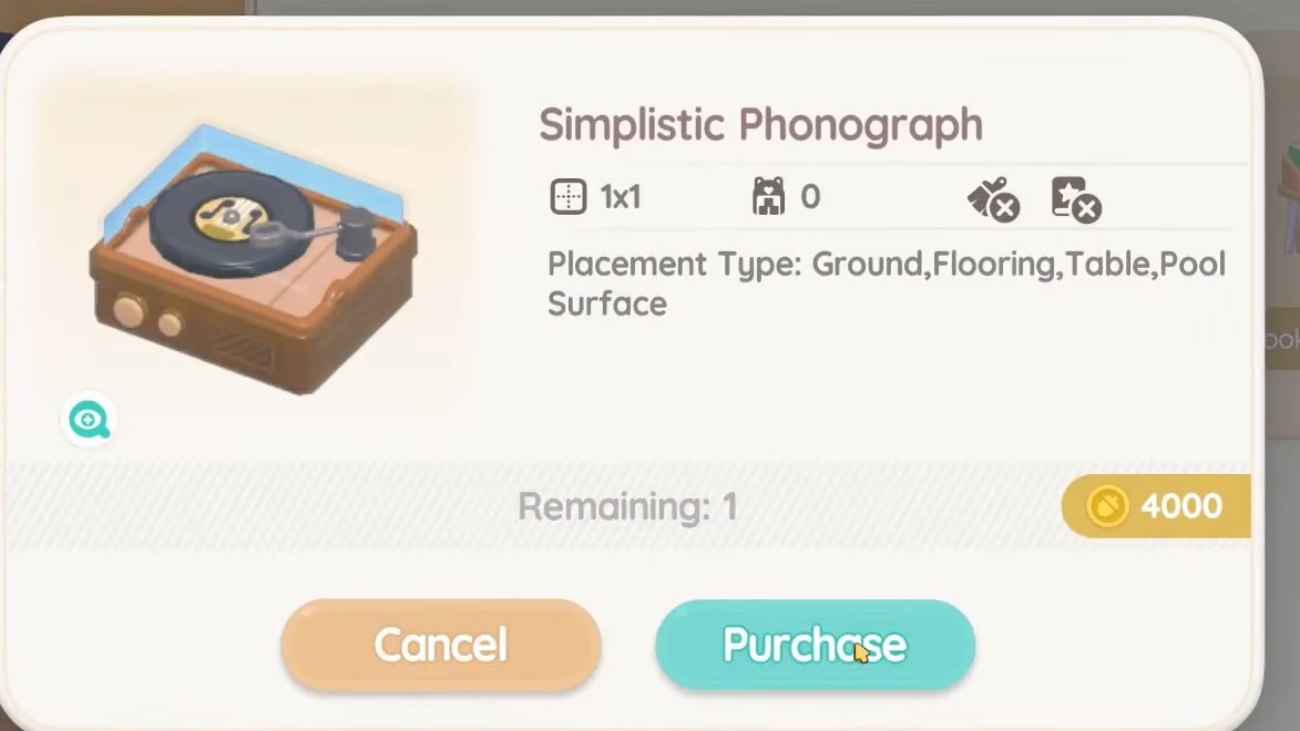 Step 2: Buy a phonograph from Ka Ching’s General Store in town and place it inside your home. The phonograph is the device that lets you start a recording session.