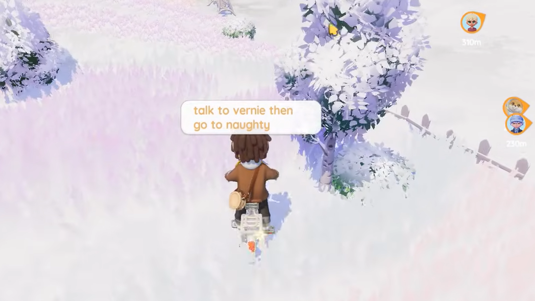 Step 1: Return to Onsen Mountain and talk to Naughty again. Make sure you have already completed the conversation with Vernie about the trekking pole before you go back.