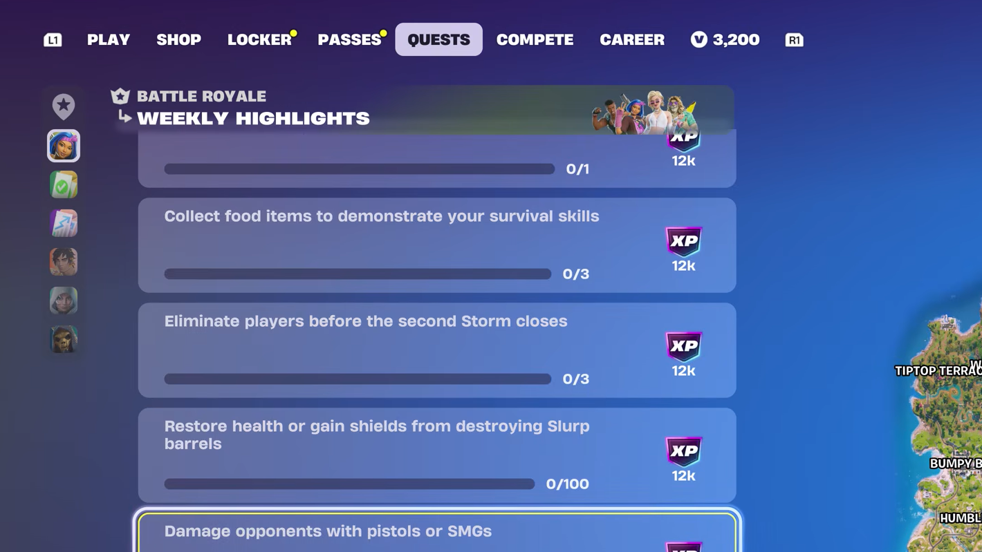 Week 14 offers five individual quests. You can complete these immediately and then wait for Week 15 to unlock the remaining quests needed to reach the six-quest total.