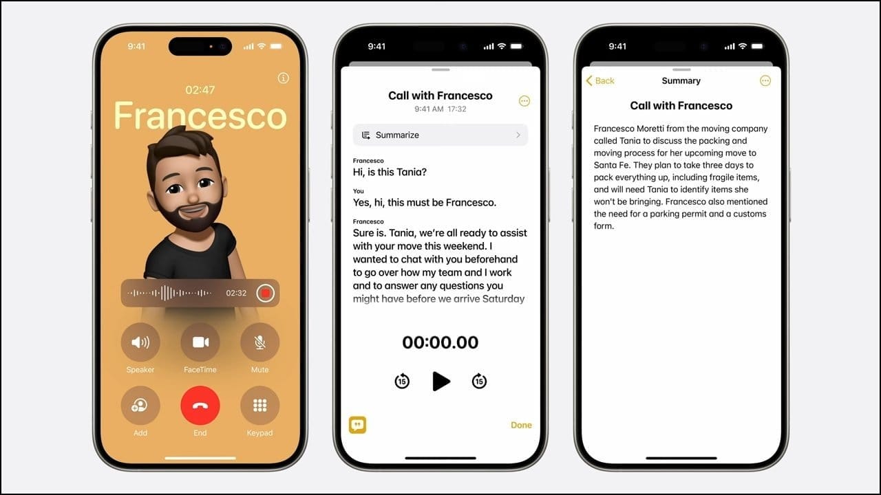 Besides Writing Tools, Apple Intelligence will let you record, transcribe, and summarize audio in apps like Phone and Notes. This means Apple users can finally record phone calls on their iPhones without having to rely on third-party apps and can even jot down notes by dictating them. Keep in mind that when you use the feature to record calls, it will notify the other party that the call is being recorded.