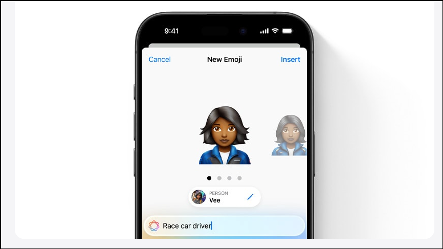 Simply enter a prompt, such as a race car driver and Genmoji will give a few different options to choose from. And that's not all, as you can even use photos from your contacts list to create Genmojis of your friends and family.