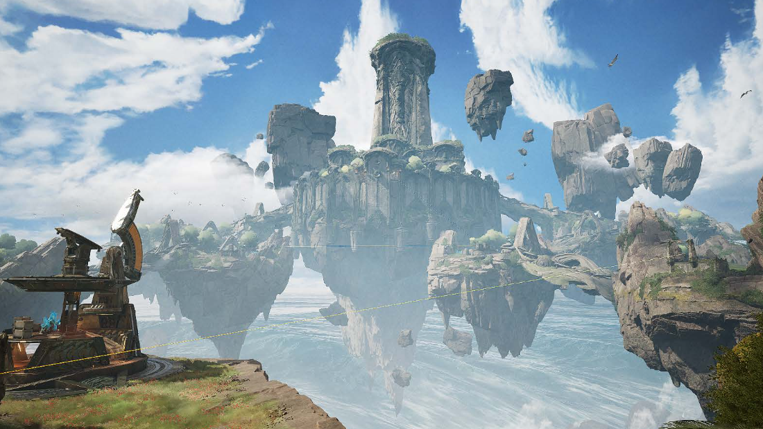 Skydrift is a lost city recently awakened, located west of Headwall. The map features hollowed-out caverns once home to winged beasts, ancient stone rings for combat, colossal chain bridges, and sky jumpers that launch players to higher elevations. The design culminates in a palace above the clouds, creating vertical gameplay opportunities that favor snipers and mobile characters. Skydrift is available in both 3v3 and 5v5 matches.