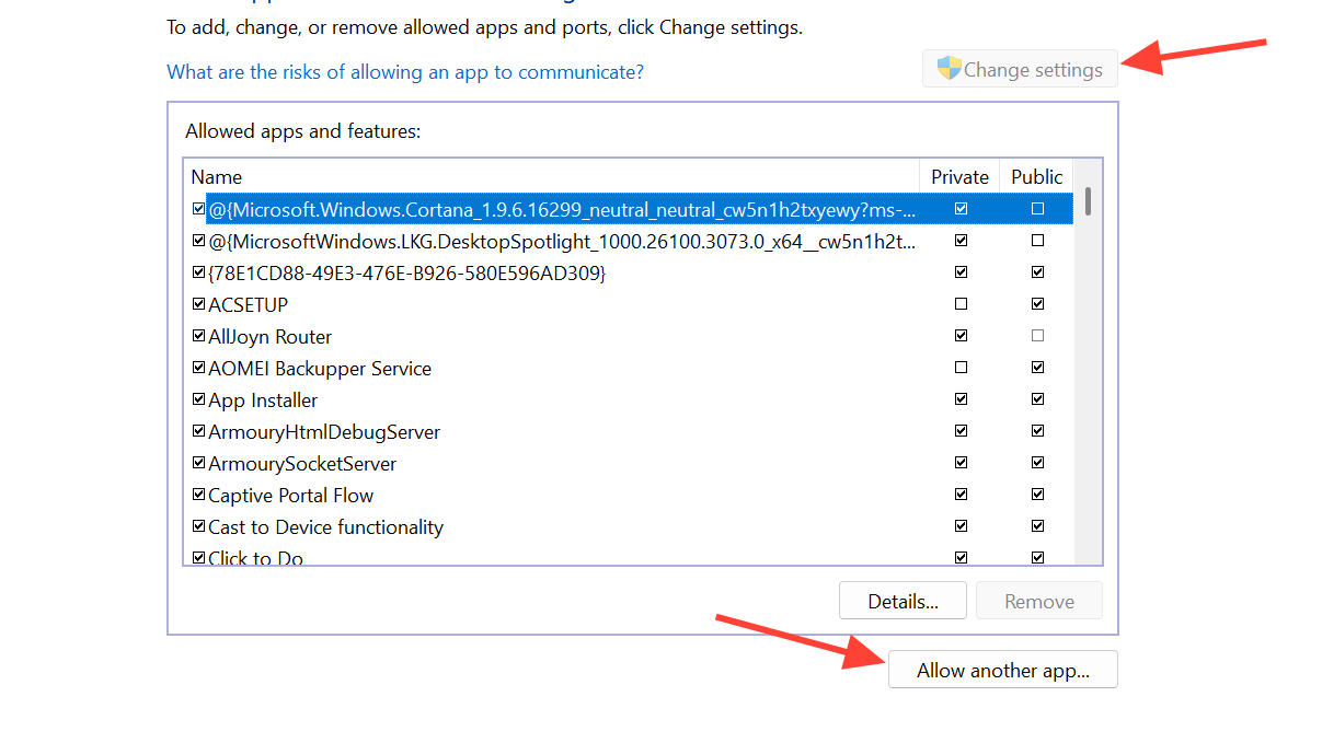 - If it is missing, use Allow another app…, browse to Highguard.exe, add it, then enable the appropriate network types.