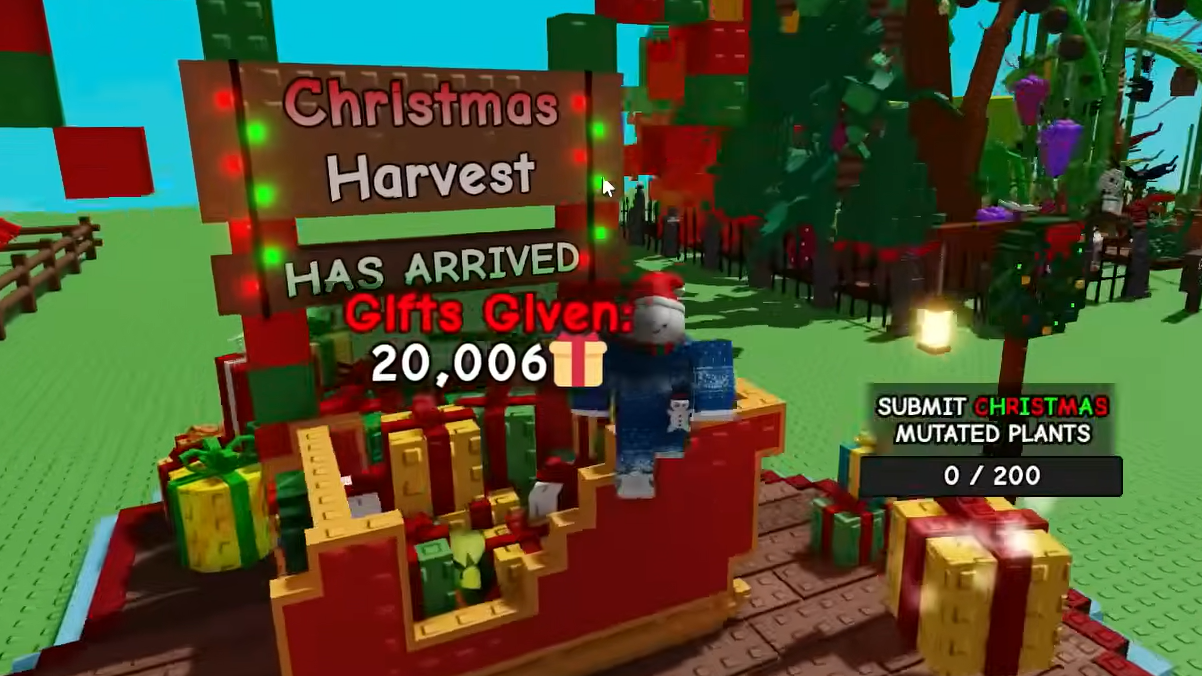 The Christmas Harvest Event runs from December 6, 2025, to December 27, 2025. It includes an Advent Calendar with daily missions and a separate Christmas Harvest submission loop that asks players to turn in Christmas-mutated fruits for rewards and unlocks. The Holiday Seed Pack and Exotic Holiday Seed Pack are included among the event’s item set alongside other Christmas-themed seeds, gear, pets, cosmetics, mutations, and food.