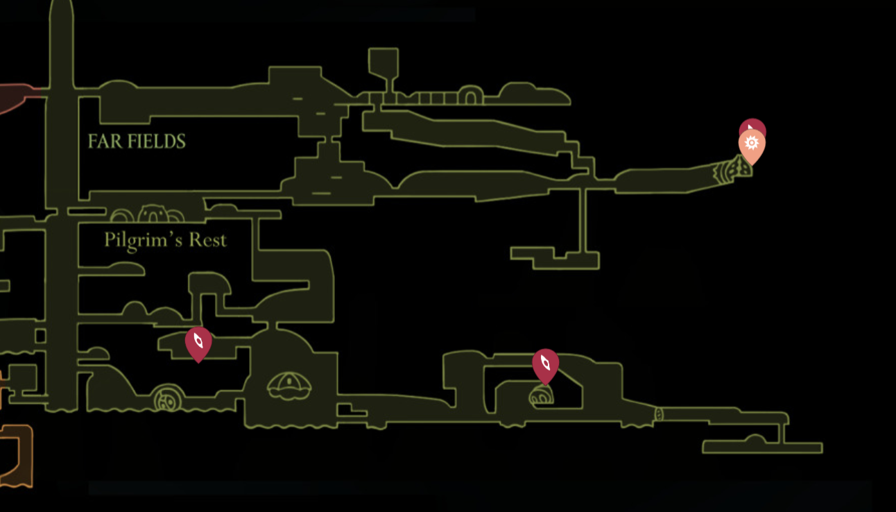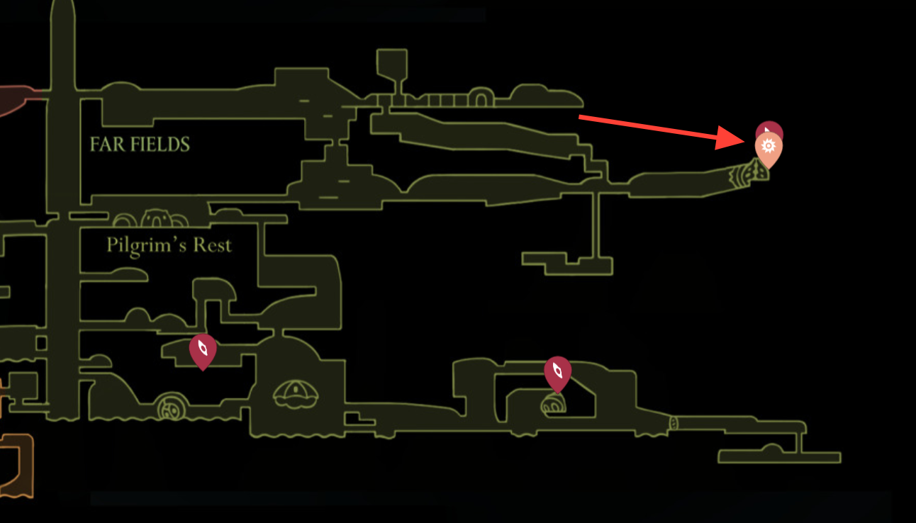 Step 1: Move east from the Seamstress toward the giant skull cavern just before the Weavenest gate.