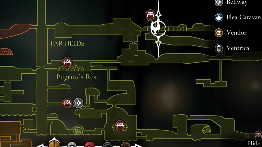 - Alternate Hunter’s March room: Early on, she can also appear near a tattered shelter (and ant patrols) if you arrive without a map from The Marrow. If you miss this, you may instead encounter her by the statue, where those enemies shift to that arena.