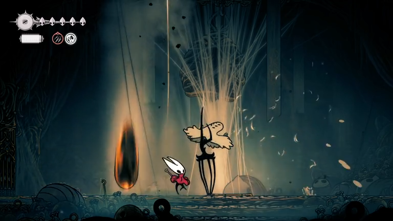 Step 3: When Widow scurries across the floor, look up for the delayed falling obstacles that follow her path. Jump into a safe gap and glide horizontally until the sequence ends.