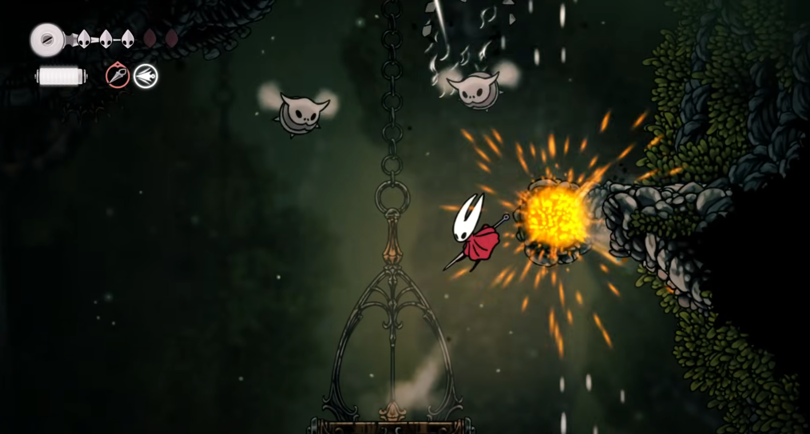 Step 4: Survive the gauntlet; when the platform above opens, climb and continue up to claim the Reaper Crest. This modifies Hornet’s basic slash into a wider arc, improving grounded coverage.