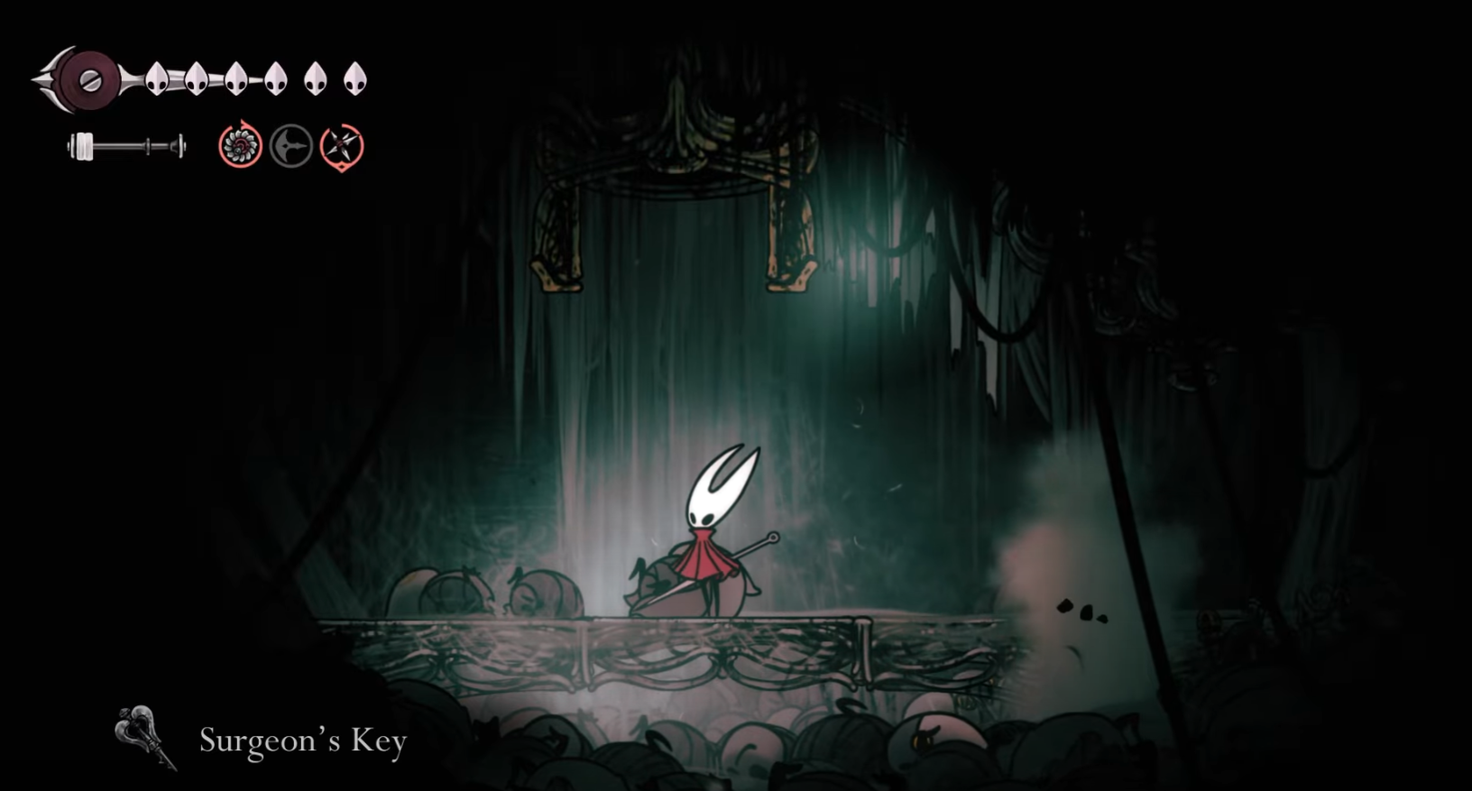 The Surgeon’s Key opens the sluice beneath Whiteward’s operating theatre, unlocking a short endgame path and a key encounter. It’s found inside Whiteward behind a concealed vertical passage and requires the Clawline to retrieve.