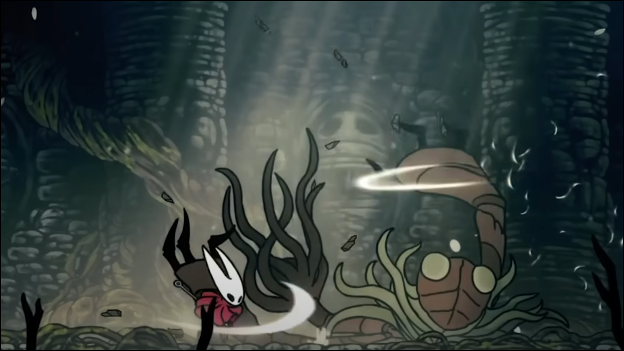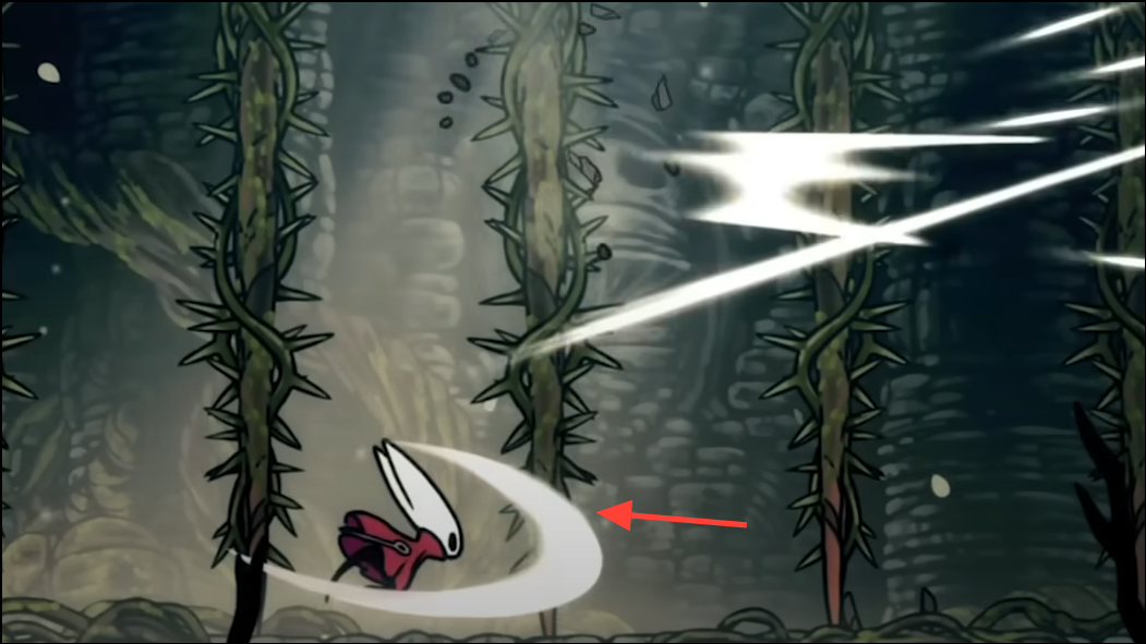 Step 2: Spawn trapping and undercuts: stand beneath a ceiling dust cue for a flier and jump-upslash three times immediately as it emerges. From directly below, its spin won’t parry your hits.