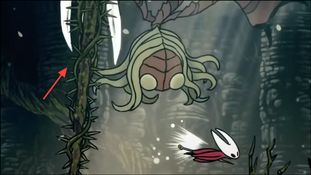 Step 1: Equip Thread Storm for a circular multi-hit around Hornet. It reliably clears close fliers and nearby vines while chipping the boss if she’s within range.