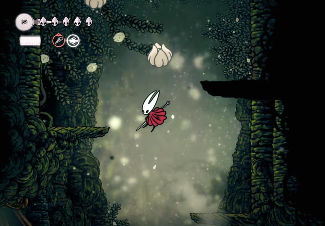 Step 1: Move into a vertical wall to make Hornet attach briefly. This stabilizes you for the next jump and prevents accidental slippage.