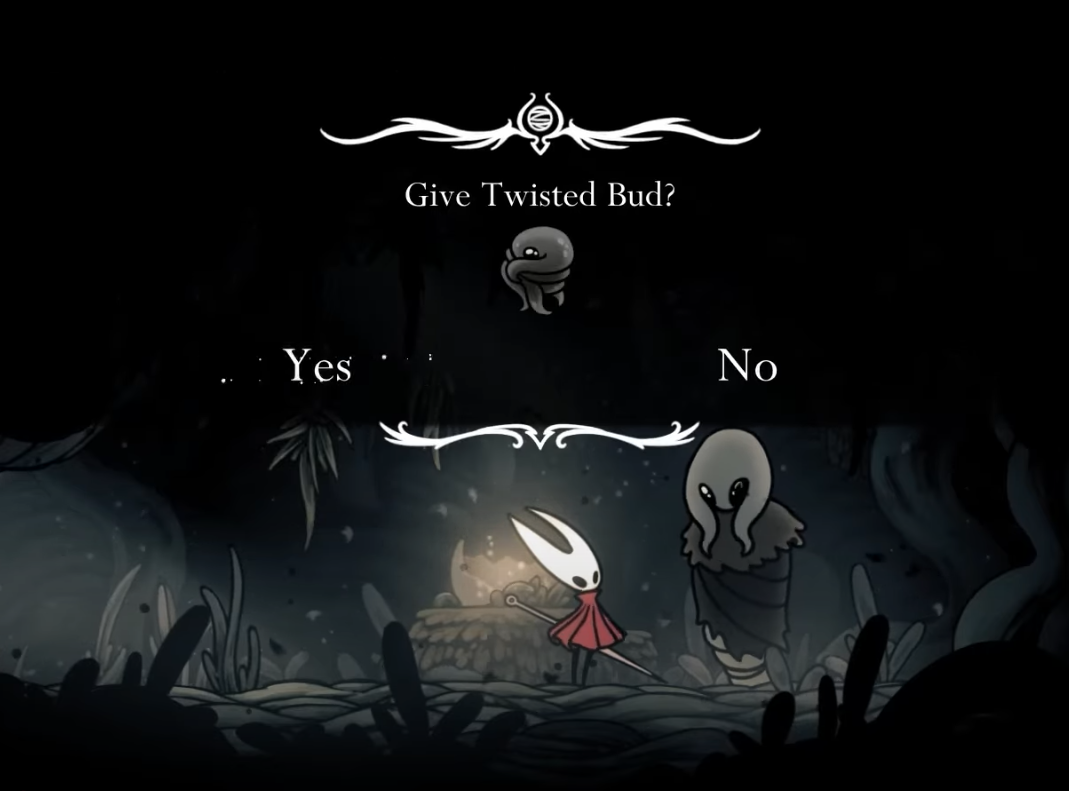 Step 3: Hand over the Twisted Bud to Greyroot. After the handoff, Hornet will be afflicted, pushing the story into the next phase and granting the Rite of Rebirth.