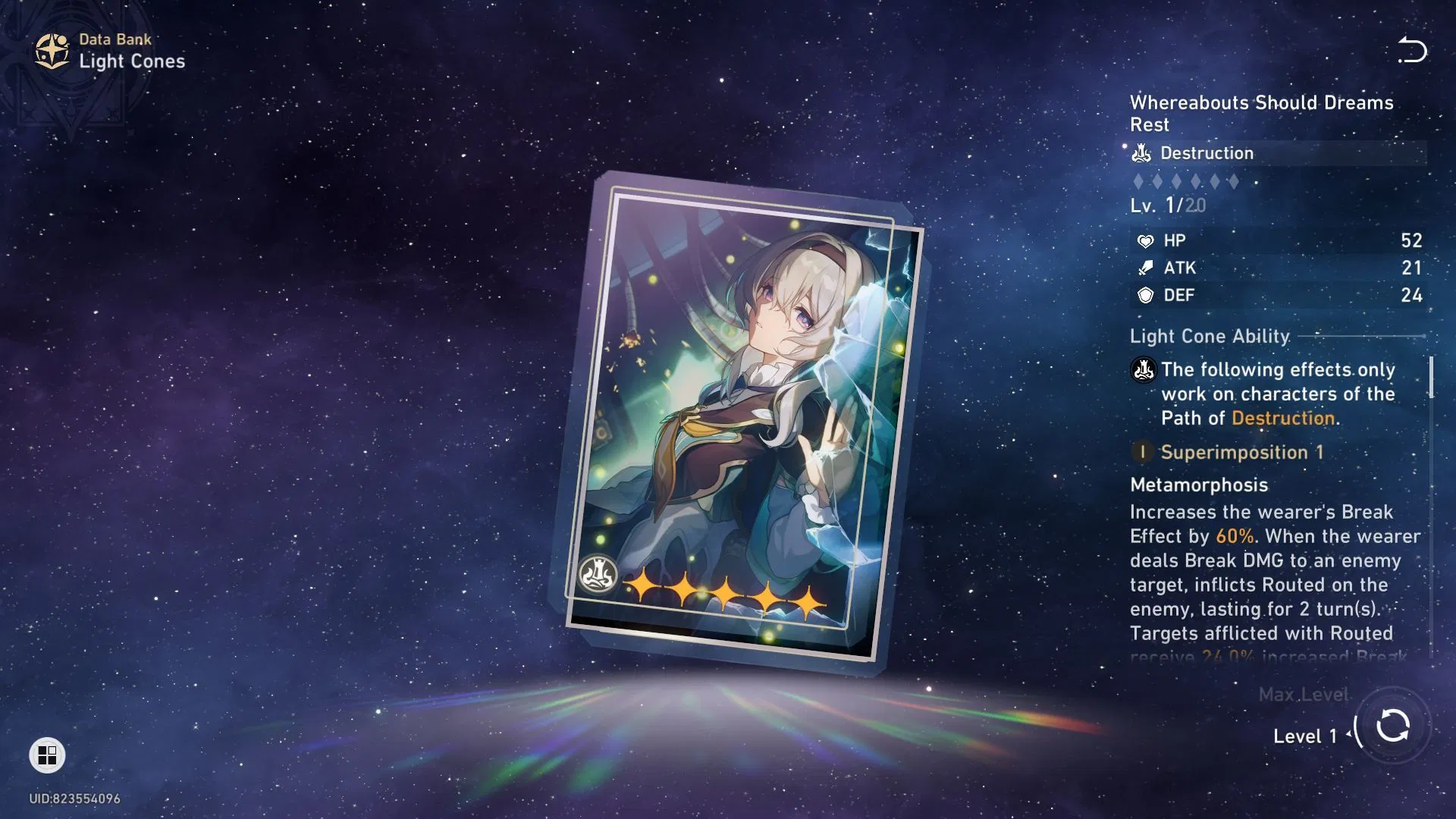 - Specialized Break support: Players missing strong Break debuffs and Speed control on their account can use this Light Cone to patch that gap in Ruan Mei-centric or Break Trailblazer teams.