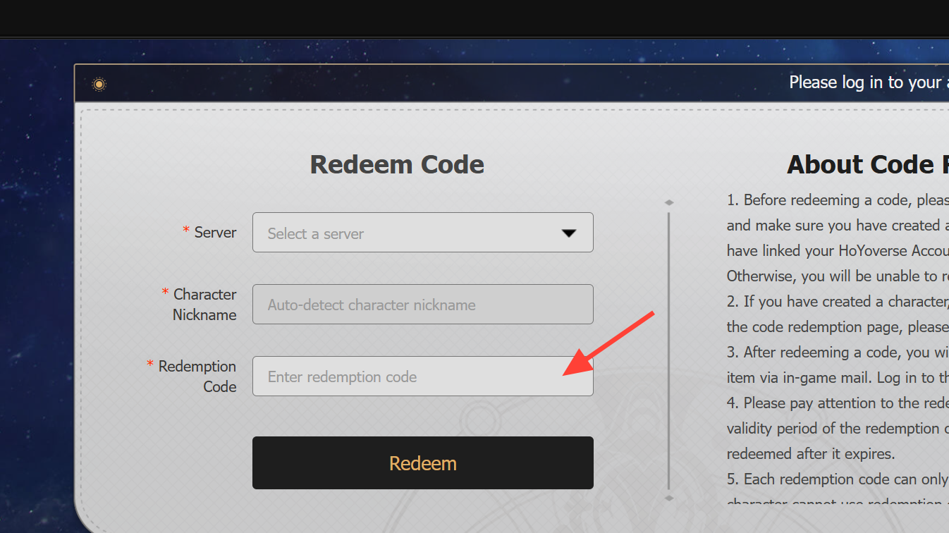 Step 1: Alternatively, open the official HoYoverse gift redemption page in a browser and sign in to your account.