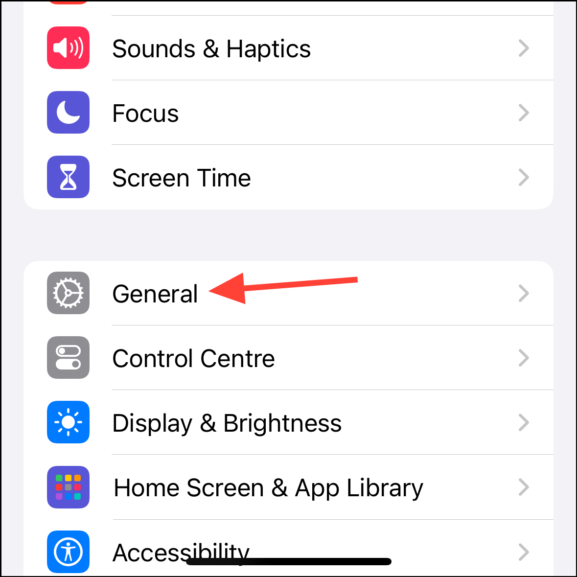 - Scroll down and tap on 'General'.