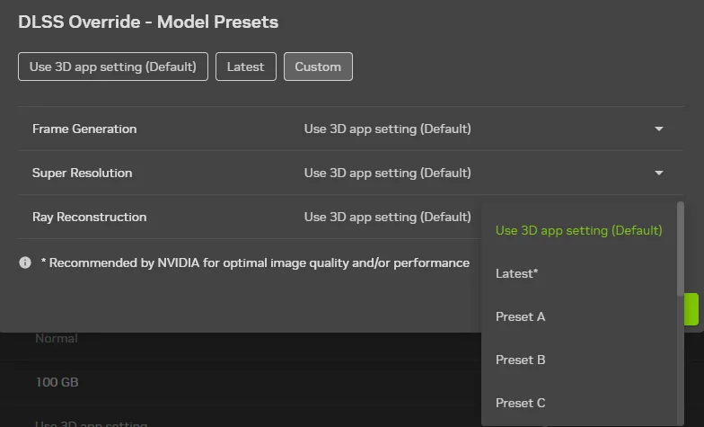 Step 3: In the NVIDIA App, open the settings for DLSS overrides. Locate the “DLSS Override feature – Model Presets” control and set it to “Latest.” You can do this globally for all DLSS titles or choose Arc Raiders from the game list and apply the override only there.