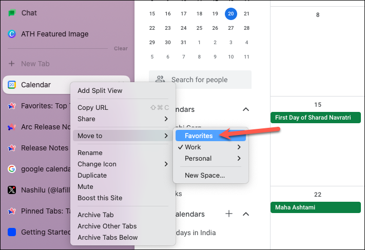To Favorite a Tab in Arc Browser, follow one of these methods: