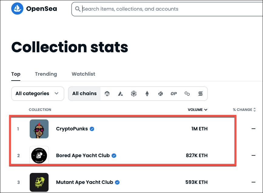 These NFT collections both have a total sales volume of over $1 billion each, ranking on top of the OpenSea stats list. But the people behind them weren’t either reputed artists or influencers. So, how do the values of such NFTs grow so high? That’s where the other factors come into play, which we’ll discuss as we go on.
