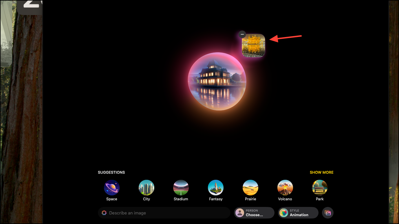 - Clicking on the suggestions adds it to the Image Playground bubble right away and as you add more suggestions, the changes start processing in real time.