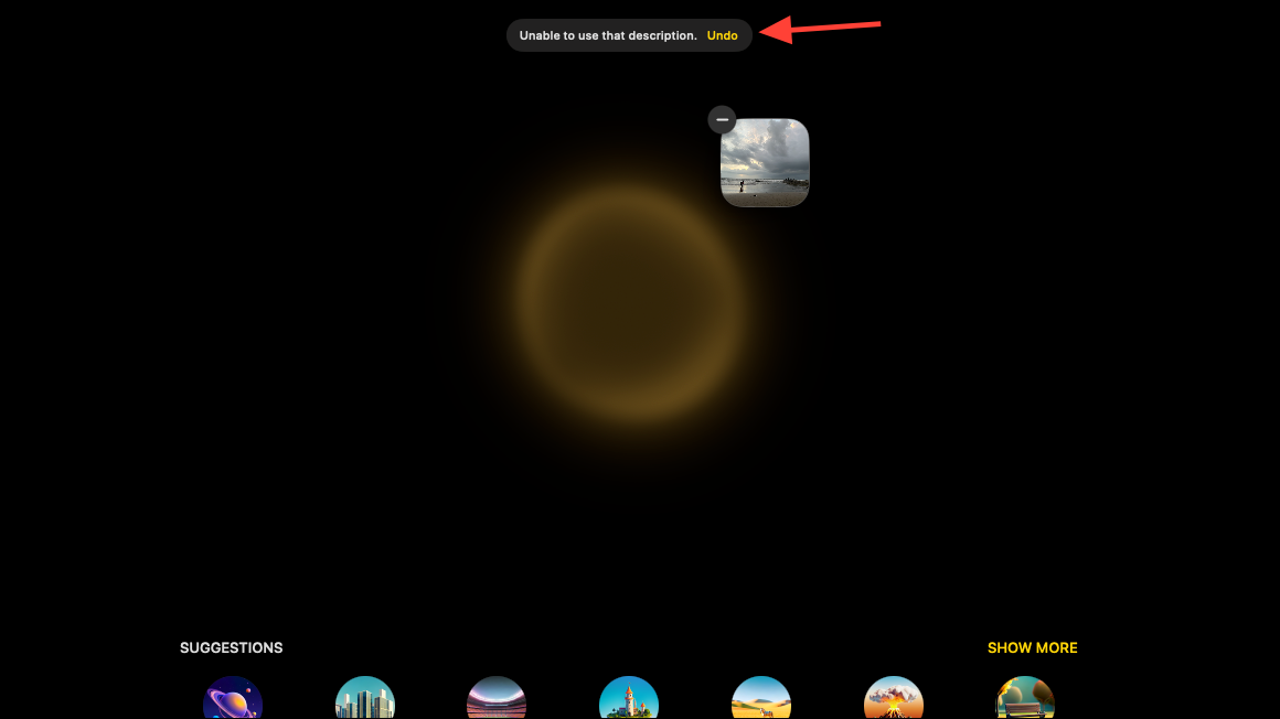Also, for too vague images, like an image of the beach or a fawn-like lamp that I had in my gallery, Image Playground was "unable to use the description".