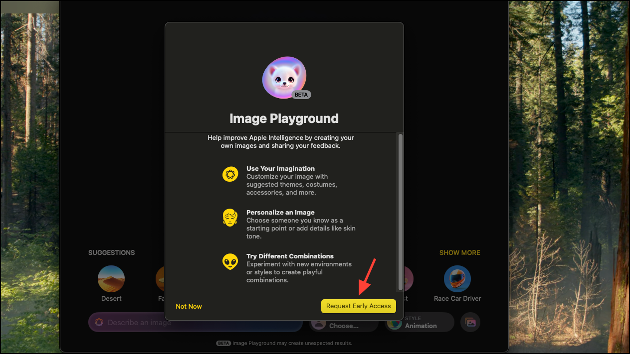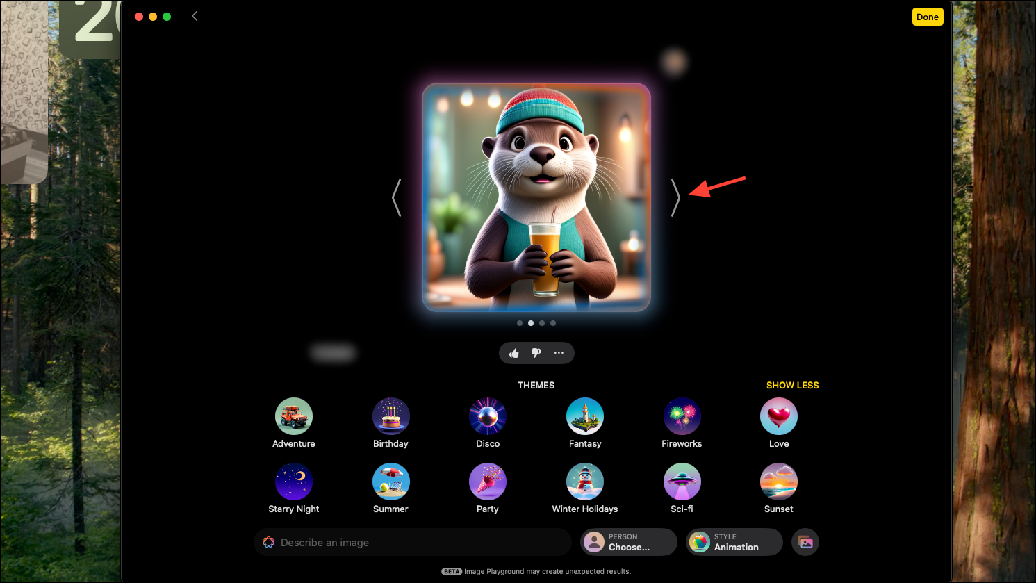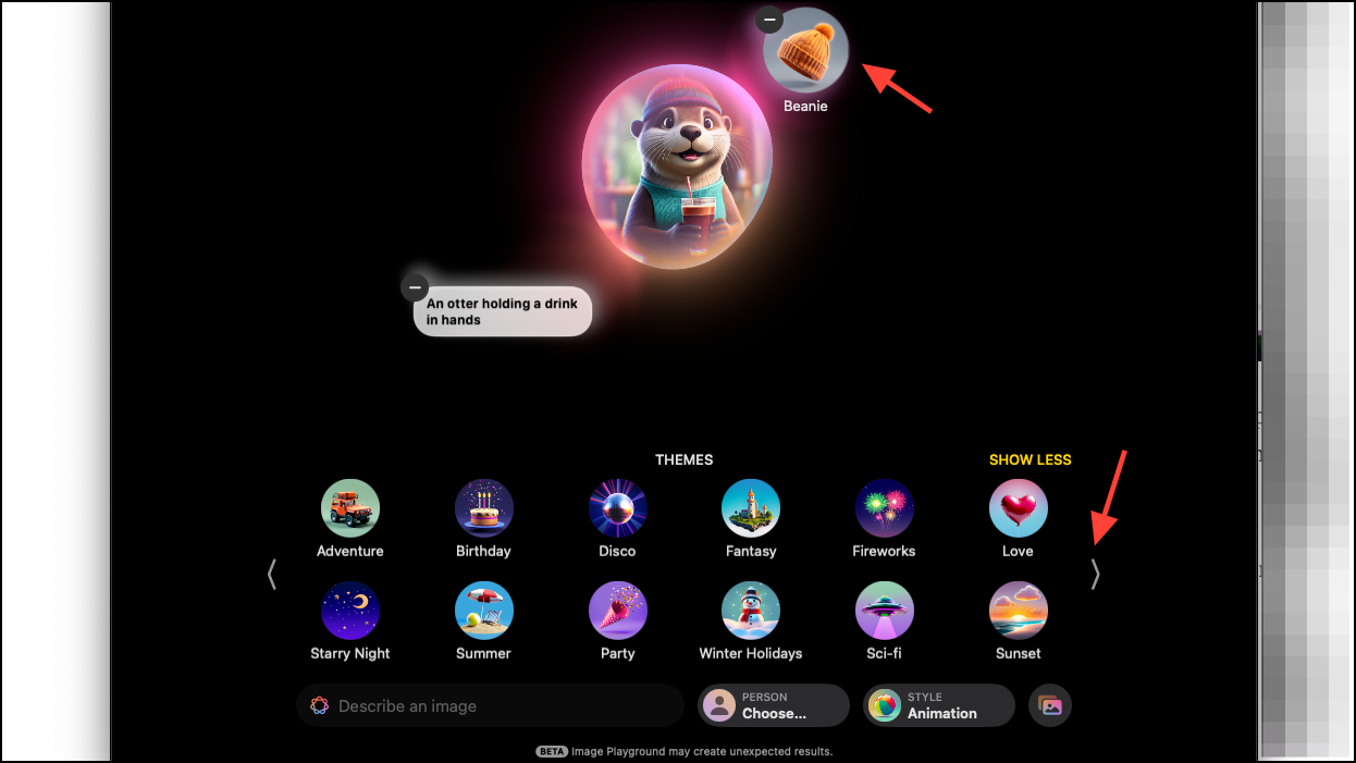 - Add a prompt, like an 'otter holding a drink in hands', and click Enter. Apple Intelligence will get to work right away, producing a set of images.