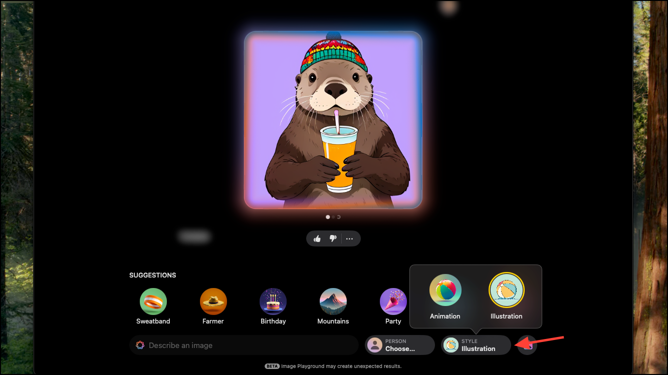 - Currently, you can choose between two styles in the Image Playground app – Animation and Illustration.