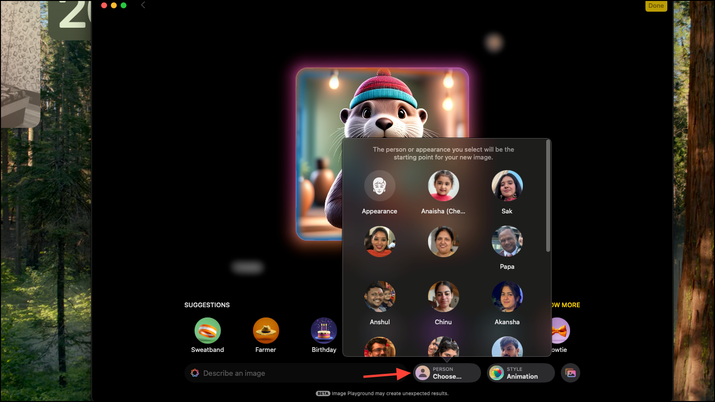 One of the best features of Image Playground is the ability to choose a person to feature in the photos. You can choose people from your photo gallery to create images of them in different scenarios. It's something Apple heavily focused on in their WWDC keynote, and rightly so.