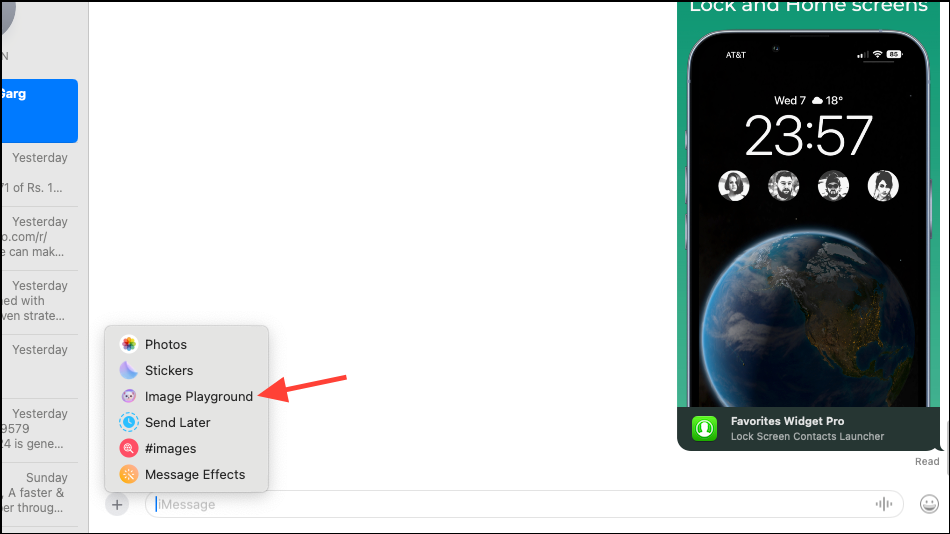 - Then, select 'Image Playground' from the menu.