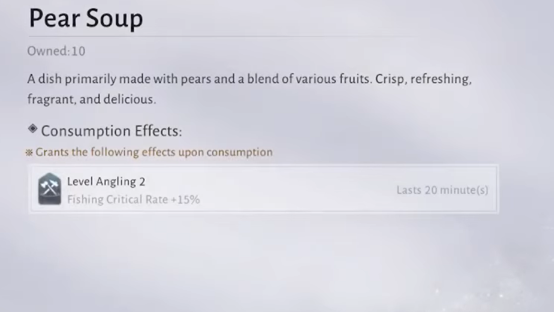 | Divine Stuffed Fish | Recovery | Participate in a fishing contest with Chu Shuiyang in Verdant Wilds |