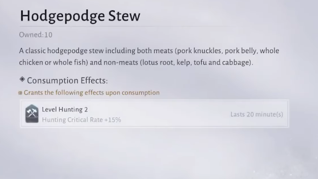 - Buff dishes that temporarily increase max HP or physical attack.