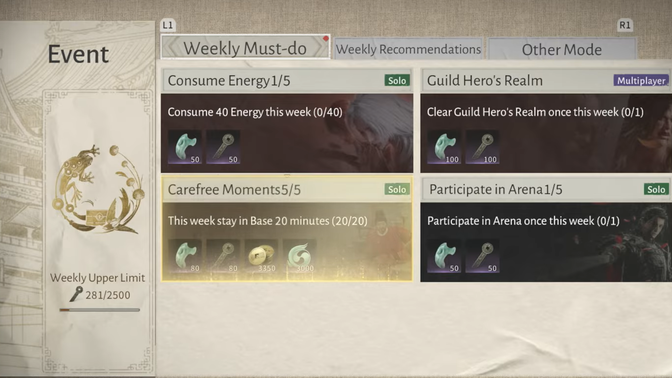 - Weekly energy spend – using a set amount of personal stamina/energy on any in‑game content yields a guild reward chest.
