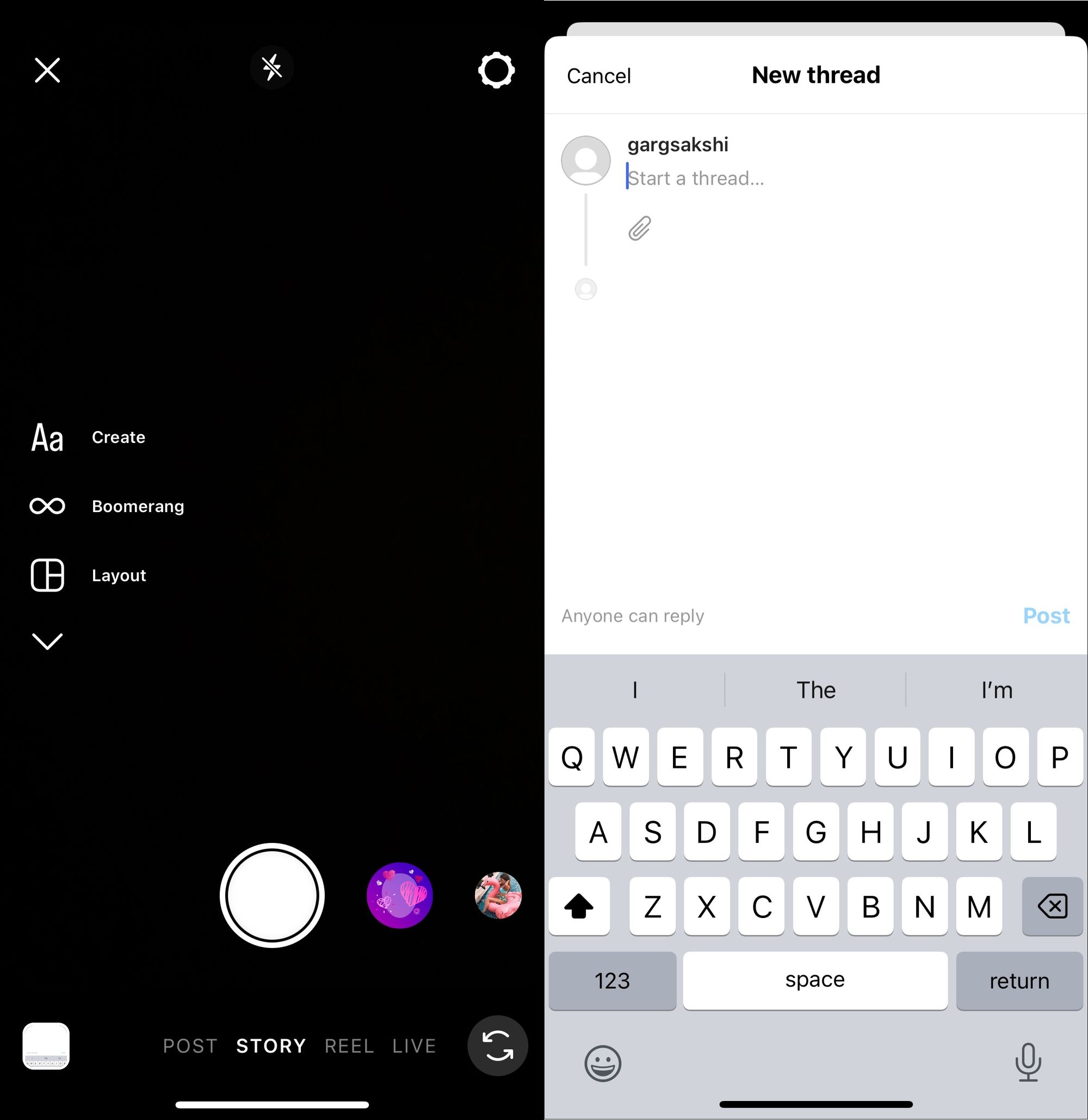 Another aspect where Threads differs from Instagram is in posting. While there are so many different types of content (and entry points) you can post on Instagram: Posts, Reels, Stories, etc., Threads only has one kind of post and one entry point for it, which is easy to navigate for anyone new to social media apps.