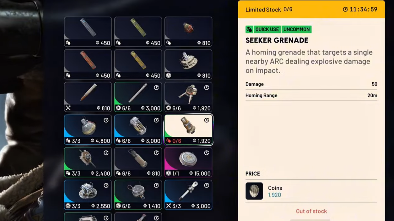 Stocking up on Seeker grenades between raids is still worthwhile. A vendor sells a limited number per day, and keeping at least one stack on hand ensures you have that flexible anti‑air and cleanup tool ready whenever you run into flying ARCs or chaotic Bastion encounters.