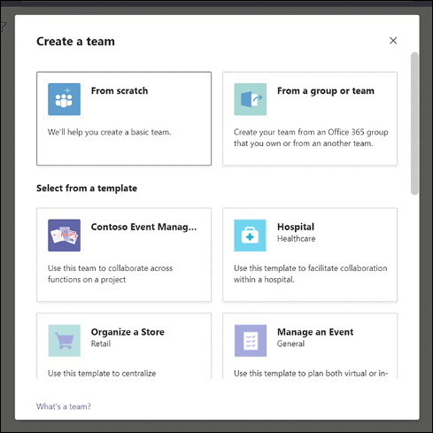 One of the best things about Templates is that organizations will be able to create their own templates too. So the IT admin for your organization can add templates specific to your organization, thus helping organizations define a team structure that they would like their employees to adhere to. Templates created by their organizations would appear towards the top of the list for end users creating a team.