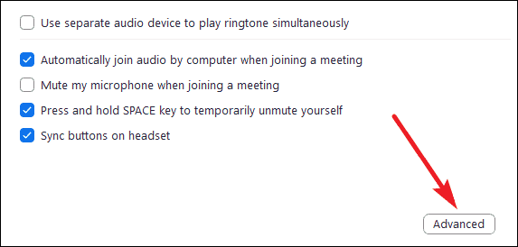 Click on the ‘Advanced’ button in the audio settings towards the bottom right corner of your screen.