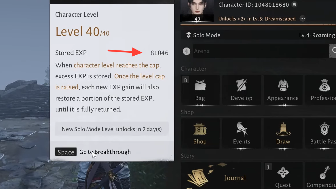 - Stored EXP sits in a separate pool until your maximum level increases via a Solo Mode Level Breakthrough.