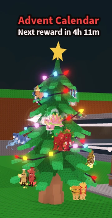 The event is built around a large Christmas tree placed near the middle of the map. It sits close to the Coin Shop, and it’s also positioned between the Winter Hour NPC and the Coin Shop. To interact with it, walk up to the tree and use the on-screen prompt (commonly E) to open the Advent Calendar interface and claim the day’s reward.