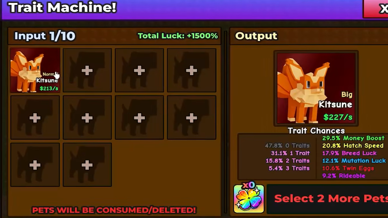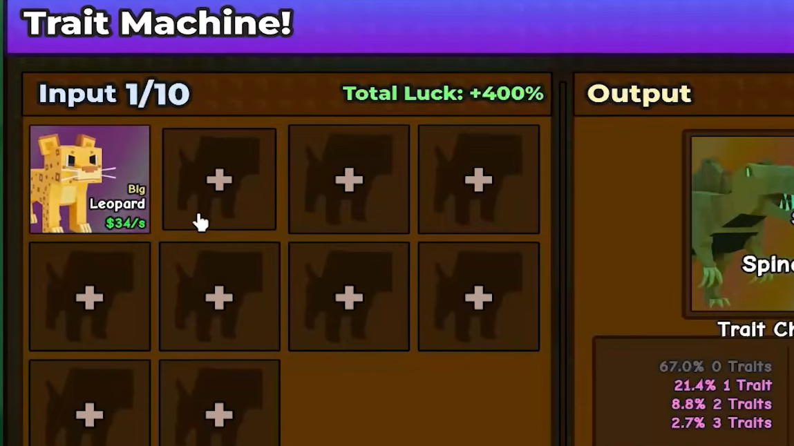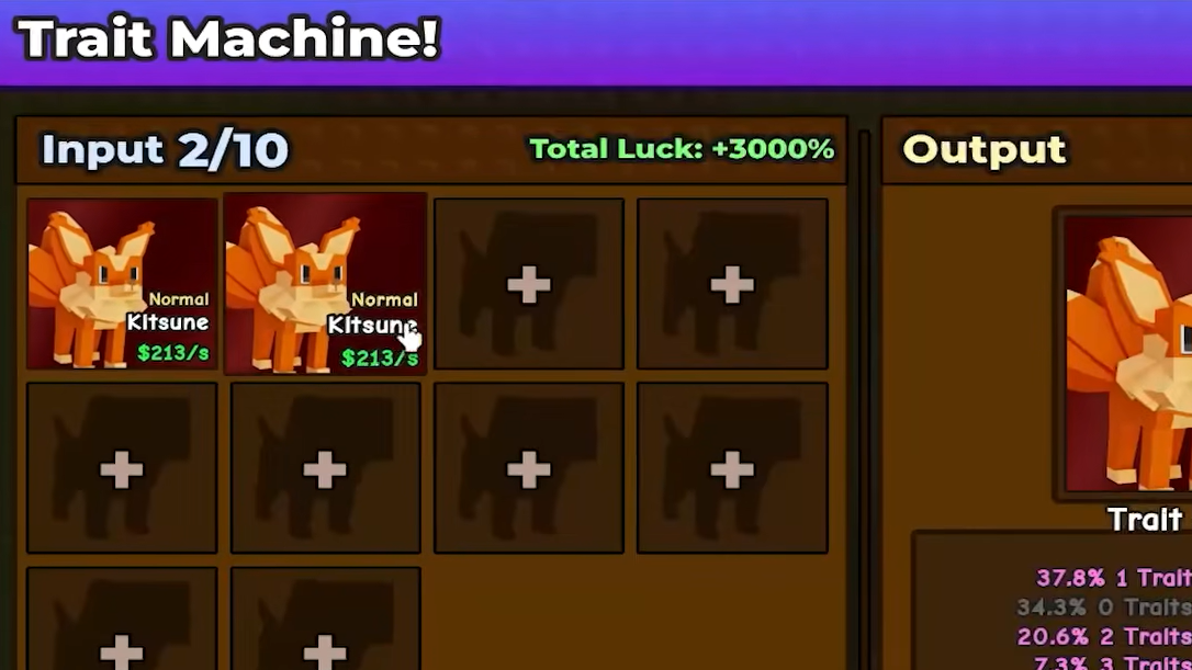 If you're working toward the Trait Machine from scratch, the fastest path is straightforward: catch everything you can, place every animal in your pen, spend early earnings on Lasso upgrades, and expand your fence. Duplicate pets are fine — even identical species can generate different income amounts, so quantity matters.