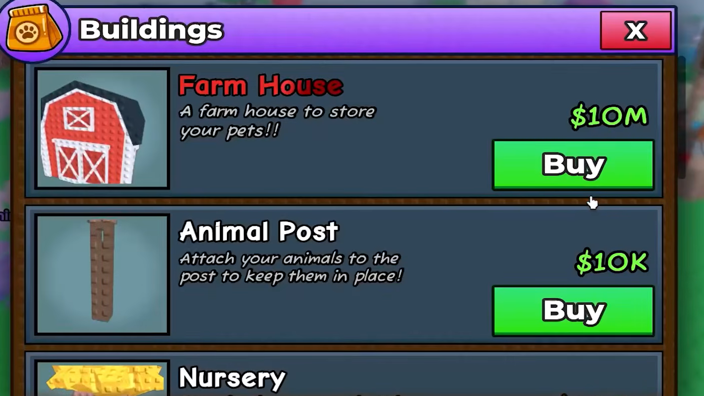 You won't have access to the Trait Machine right away. It sits behind a 1,000,000-Coin price tag in the shop, under the Buildings tab. For new players, that means catching animals with your starter Lasso, filling your pen, and steadily upgrading both your Lasso and your farm's capacity until you've banked enough passive income. Prioritize expanding your base early so more pets can generate money simultaneously.