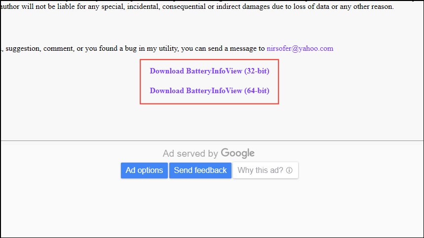 - Visit this website and download the 32-bit or 64-bit version of BatteryInfoView, depending on your system.