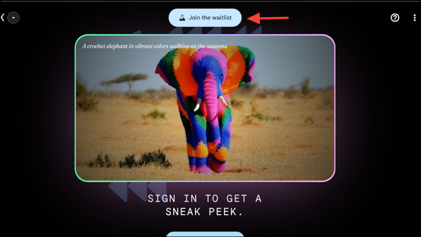 - Click on the 'Join the waitlist' button for VideoFX to sign up and get access to the tool.
