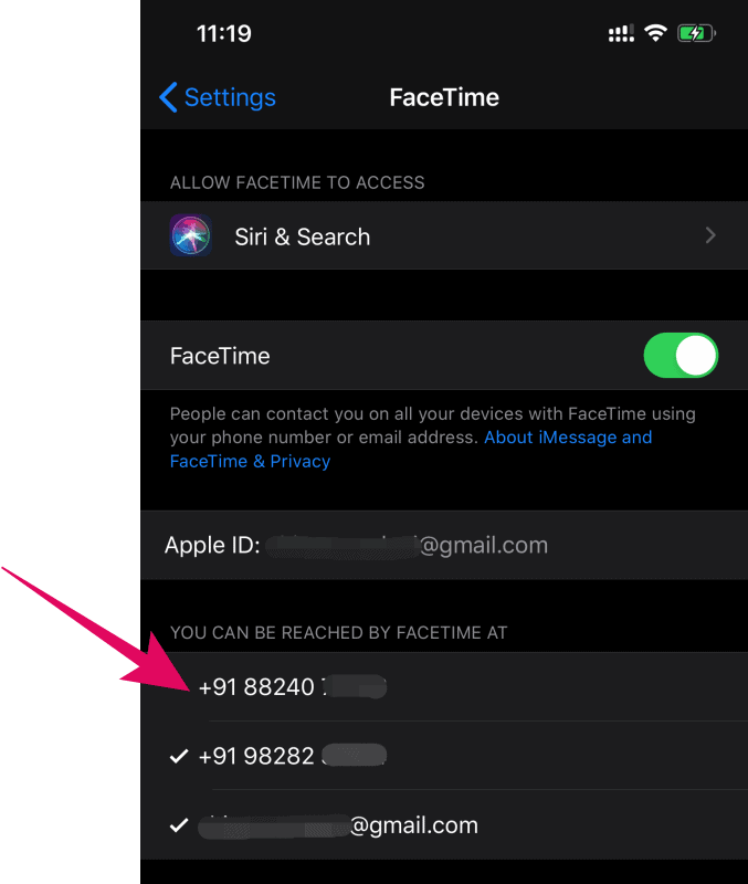 On the FaceTime settings screen, tap your second phone number under the “You can be reached by FaceTime at” section to activate the second number for FaceTime.