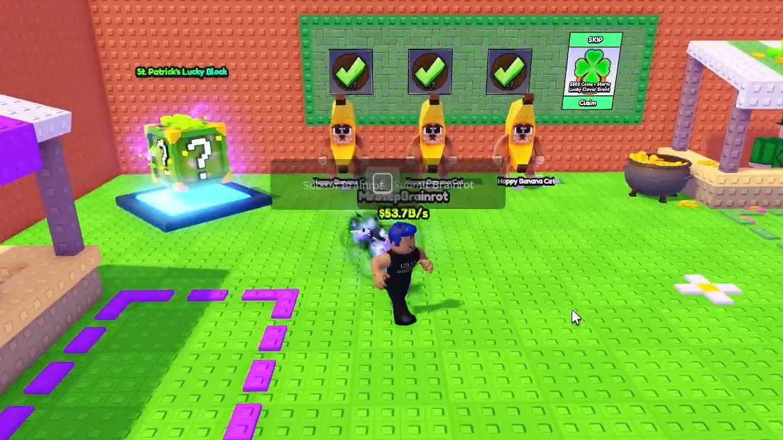 Jump for Brainrots added a limited-time St. Paddy Machine for its St. Patrick's Day event, and it works differently from the Los Machine or Traits Machine. Instead of being locked behind a plot, the St. Paddy Machine sits right in front of the plots where every player on the server can reach it. Activating it kicks off a server-wide event that spawns high-value Enchanted brainrots across the entire map.