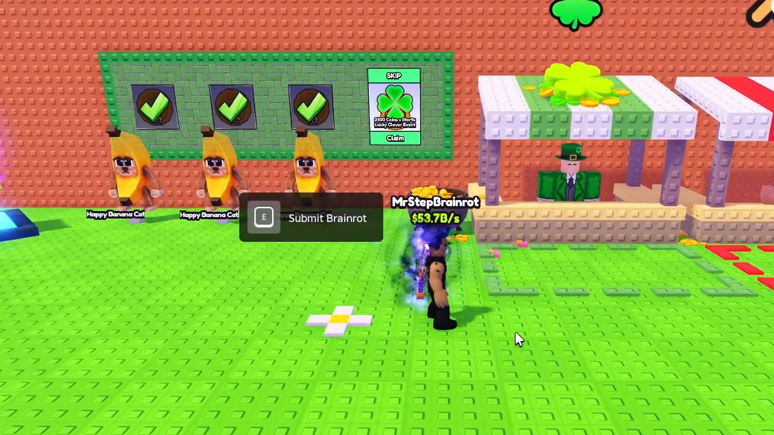 Step 3: Once the 20th Clover brainrot is deposited, the machine activates automatically. Clovers will start raining down, and Enchanted brainrots will begin spawning across every zone. You now have 3 minutes and 30 seconds to collect as many as you can.